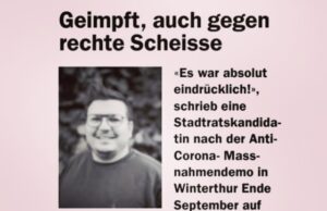 «Es war absolut eindrücklich!», schrieb eine Stadtratskandidatin nach der Anti-Corona-Massnahmendemo in Winterthur Ende September auf ihrer Facebookseite. Sie ist Mitglied des «Team Freiheit» für Winterthur, bestehend aus den Stadtratskandidat:innen von FDP, SVP und die Mitte.