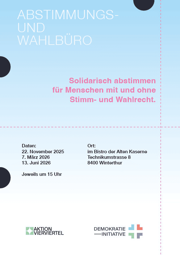 +++ Bist du für mehr Demokratie für alle, die hier leben? Dann komm zu uns und teile deine Stimme! Wir diskutieren zusammen mit Menschen ohne Stimm- und Wahlrecht die Vorlagen.